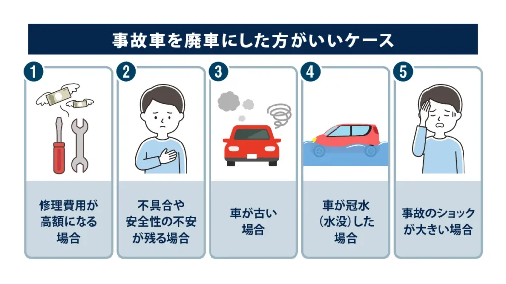 ここでは、廃車を検討すべき代表的なケースについて解説します。