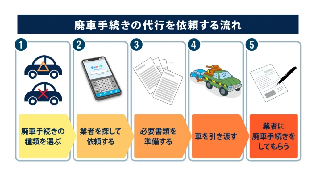 廃車手続きの代行を依頼する際の流れは以下のとおりです。